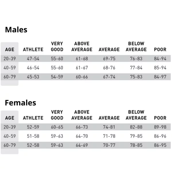 Due to the rise in popularity of smart watches, your resting HR might be something which you are acutely more aware of. With this measurement it’s particularly important to take a measurement at rest. Moving around, or feeling psychologically stressed about something could give you a skewed reading.